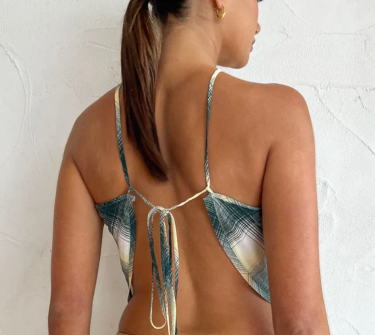 Defined by its ombre check print, pair the Edie Halter Top in Teal with denim or trousers for an elevated weekend look.