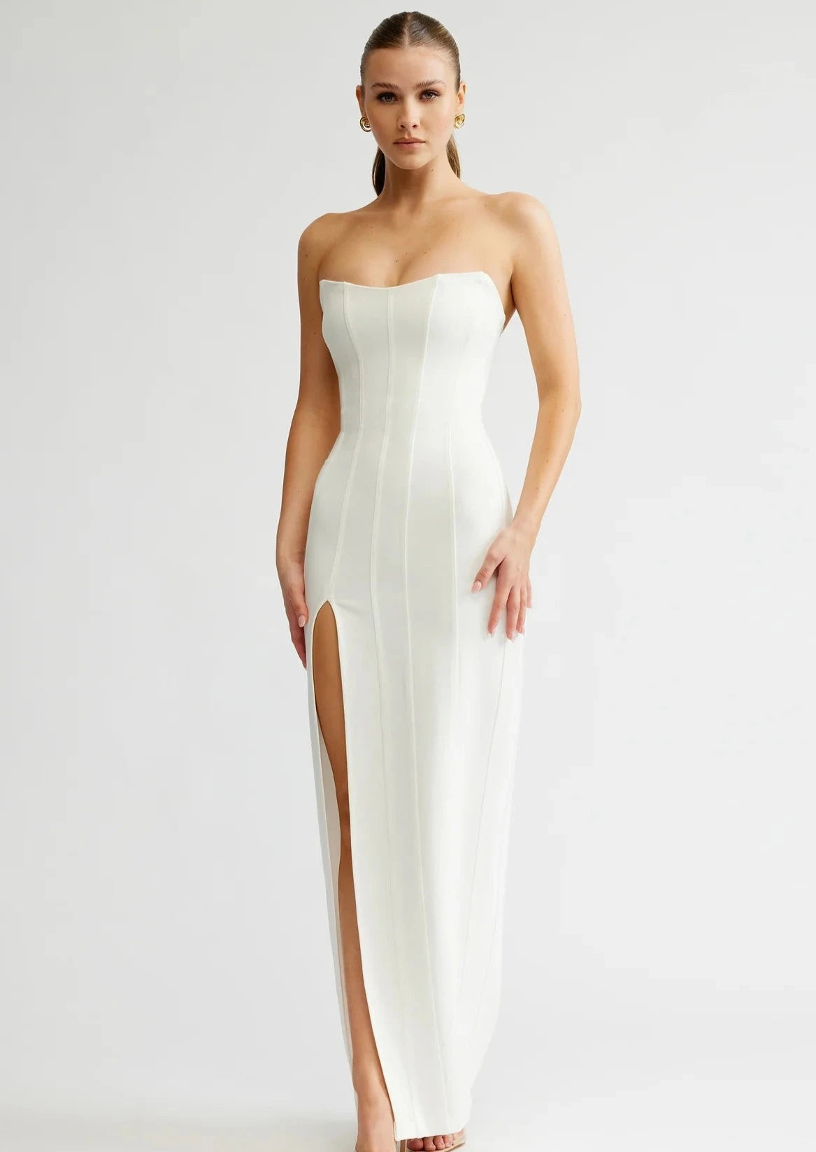 The Leyla is LEXI's bestselling silhouette, re-released in a new and improved Ponte jersey fabric with two way stretch which moulds to your body shape. The Leyla features a strapless fully boned bodice which is designed to elongate and contour sexy curves. The dress has a seductive split and is floor length to create a timeless silhouette, perfect for a glam evening event.