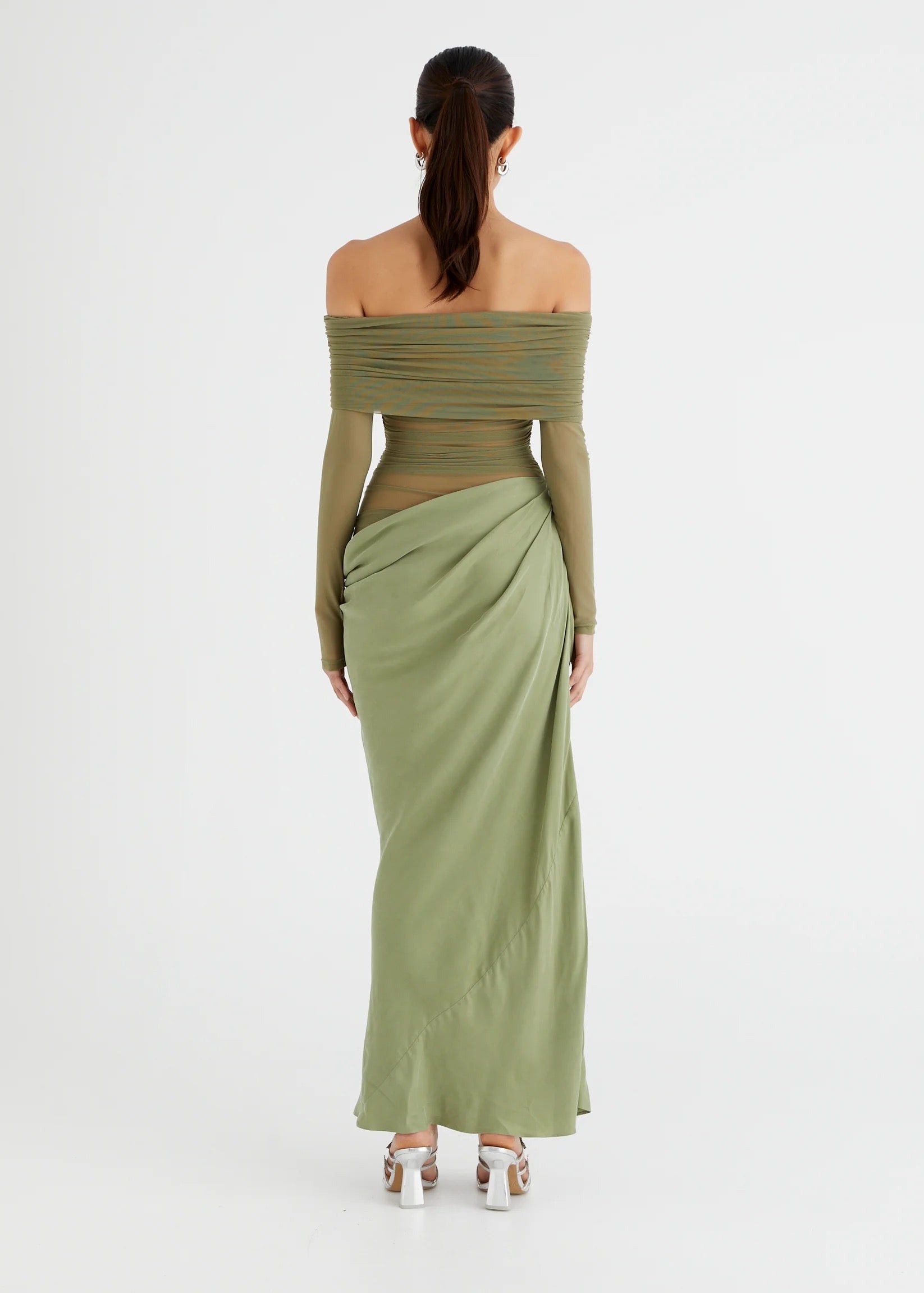 YASMIN OFF SHOULDER MAXI PISTACHIO- need info